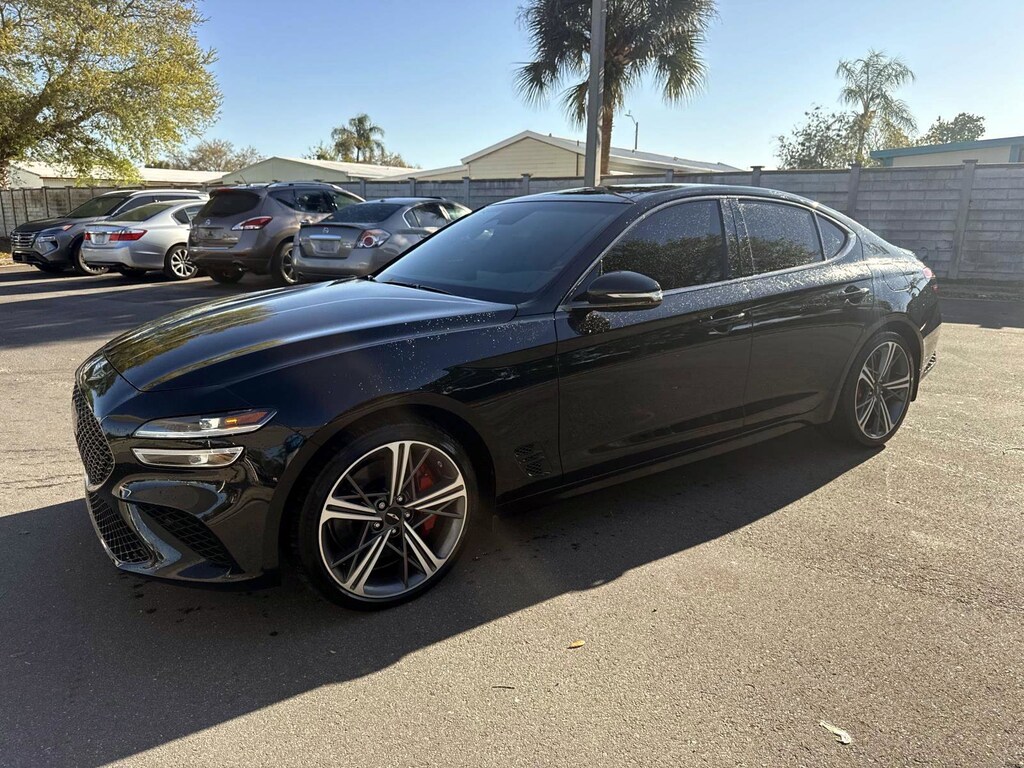 If you are thinking about getting a G70, just do it!! You will not regret your decision, especially if you get the V6 3.3T Lambda engine. This car is fun, fast, and very well built. The craftsmanship and quality feel is amazing. Everything is real; if it looks like that material, it is that material, no fake stuff!! The engine and transmission is amazing. Although the engine is not a rev happy "over squared" design, it is ready at any notice to shoot up the RPMs and move. The Lambda V6 3.3T in this vehicle is by far one of the nicest engines I have driven. A lot of people complain about the 8-speed transmission being a little slow, but I think it shifts perfectly fine and crisp. The interior is built to last. If you don't require much, you will be perfectly at home with almost too much comfort. My favorite thing is the ventilated seats on sweaty days. My main focus of this review is how the G70 drives. As stated before, the engine has tons of power at any moment, is very responsive, and has tons of passing power/acceleration. No one will ride your butt in this car, just smash the gas and watch them disappear in the rear mirrors! It is amazing for highway travel. It hums at a low 1,500rpm @55mph, and about 1,800rpm @80mph. This engine will not scream at you for making it do its job. Not only is it a highway cruiser, but is super fun on the back roads. You almost always run out of real estate before you have to step on the brakes from accelerating (brakes are great too).I wouldn't say it has snap oversteer, but the front-end plows in first before you feel the rear slide out, so you can feel how hard you can push it. Maintenance is tricky, but doable. It requires 7.26qts of oil, which is a decent amount. But, if you are smart, you can get reasonably priced parts, as it is shares a lot of parts with Hyundai/Kia's. To change the oil, you have to remove some under panels, which is annoying, but reasonable. It does have a oil filter cartridge, no spin on type, not a huge fan of those. It also is pure GDI, so carbon build-up is possible on the valves. But with just those few complaints, everything is very accessible in the engine bay for a twin turbo V6. SUMMARY: You will mostly likely buy/lease this car and not want to let it go!… - 5.0